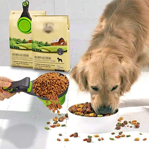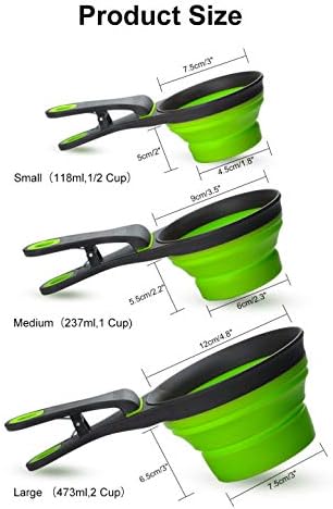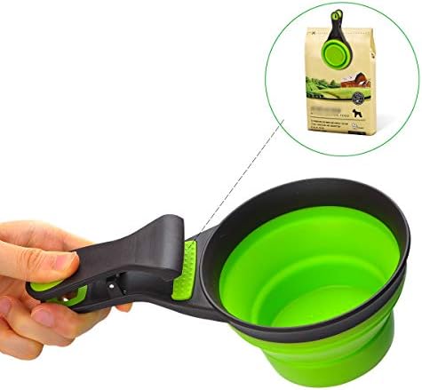 TOP STAR 3 in 1 Pets Silicon Collapsible Measuring Cups,for Pets Dogs,Cats Food Water Scoop,Bag Clip (1/2 CUP Capacity,118ml)