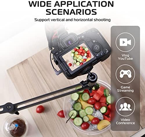 ▶【Camera Desk Mount Stand】 Up to 70 cm/27.56 inch center shaft height ,no limit shooting from any angle or distance. 75 cm/29.53 inch super long extending arm, three stages free adjustments, challenge and inspire your creativity.