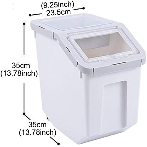 Material: food-grade PP plastic and silicone Size: 23.5 x 35 x 35cm Capacity about: 8-10kg grain Notes: 1.Due to the light and screen setting difference, the item’s color may be slightly different from the pictures. 2.Please allow slight dimension difference due to different manual measurement.