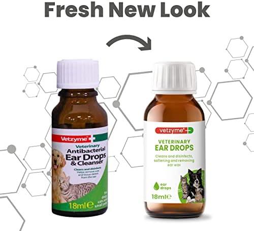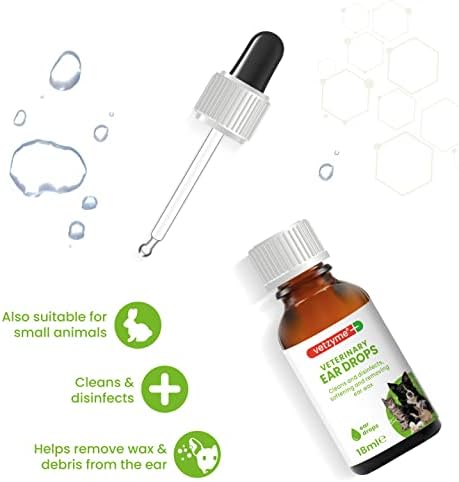 Vetzyme Veterinary Antibacterial Ear Drops & Cleanser for dogs, cats and small pets. Cleans and disinfects. Helps remove wax and tissue debris from the ear. Vetzyme Veterinary Antibacterial Ear Drops & Cleanser used regularly will help maintain good ear hygiene. The product can be safely used on the ears of dogs, cats and small mammals. This product has been specially formulated to help soften and remove ear wax, soothe irritation and help avoid bacterial build up. It will also help cleanse and disinfect insect bites, minor cuts and grazes around the outer ear.