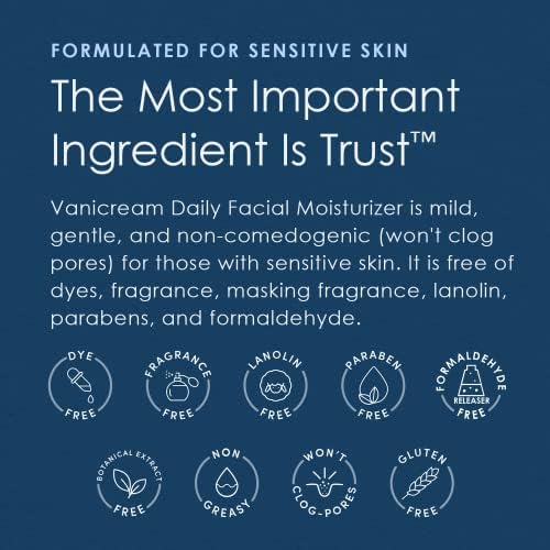 Visit the Vanicream Store Vanicream Daily Facial Moisturizer With Hyaluronic Acid 5 Key Ceramides and Squalane For Sensitive Skin Fragrance and Gluten Free pH-Balanced Dermatologist Tested 3 Ounce