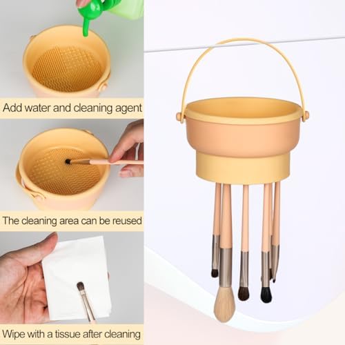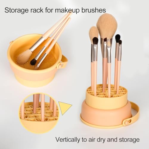 Vukehon Makeup Brush Cleaning Mat, 3 in 1 Silicone Makeup Brush Cleaner Bowl with Drying Holder, Limpiador De Brochas De Maquillaje, Portable Cosmetic Brush Cleaner, Large