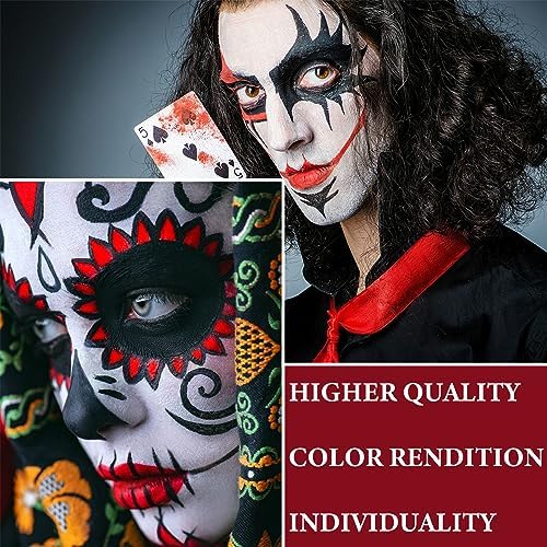WENJLYJ Clown Black White Red Face Body Paint Makeup,Waterproof Halloween Face Paint Professional Joker Black White Red Clown Wheel for Cosplay Halloween SFX Joker Zombie Makeup Kit