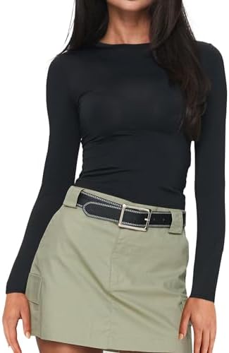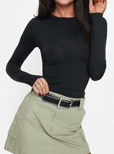 WHIFAN Going Out Tops Y2K Tops Long Sleeve Shirts Basic Tees Cute Top
