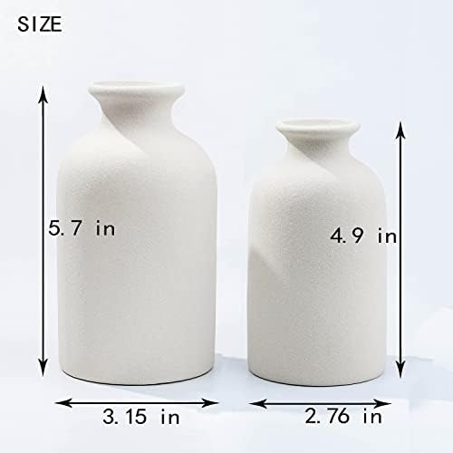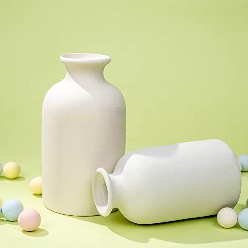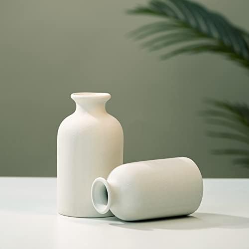 White Ceramic vases Home Decor 2pcs Small vase Set Boho vase Modern Farmhouse Decor (White)