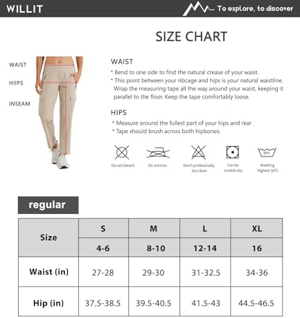 Willit Women’s Cargo Hiking Pants Lightweight Travel Outdoor Track Pants Quick Dry Golf Pants Water Resistant
