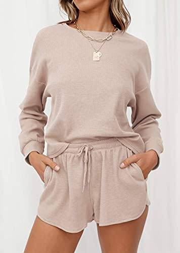 wkwmrpet Women’s Waffle Knit Pjs Short Sleeve Top and Shorts Pullover Nightwear Lounge Pajama Set with Pockets