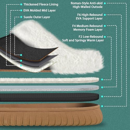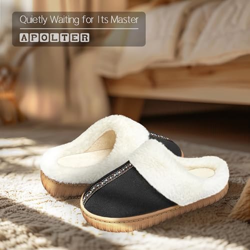Womens Fuzzy Memory Foam Slippers Ladies Warm Suede House Shoes Comfy Anti-skid Indoor Outdoor