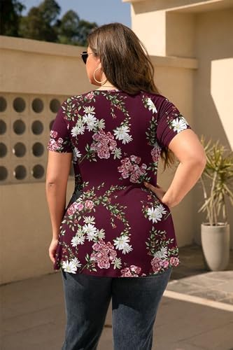YGJIEGENG Womens Plus Size Tops Summer Short Sleeve Tunic V Neck Casual Loose Shirts Clothes L-4XL
